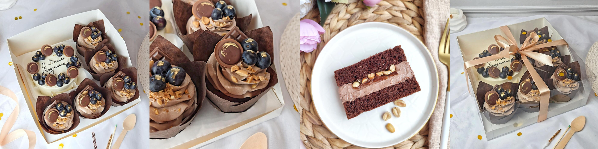 На дополнительных фото можно показать детали текстуры, разные ракурсы, материалы, упаковку, размер товара относительно окружающих предметов, сладости в разрезе, чтобы дополнительно рассказать о содержании