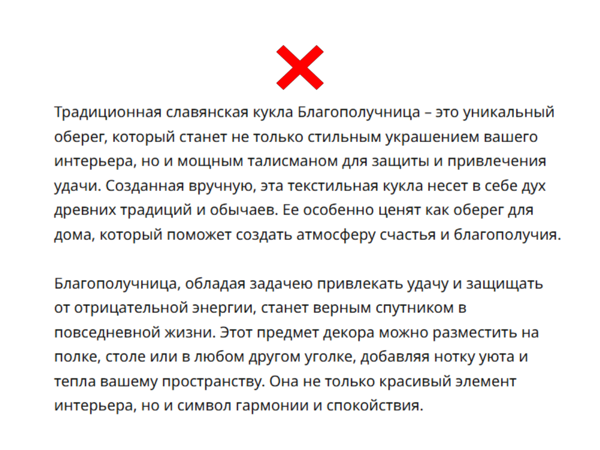 Описание, которое может ввести клиента в заблуждение относительно свойств товара или обещает нематериальные результаты