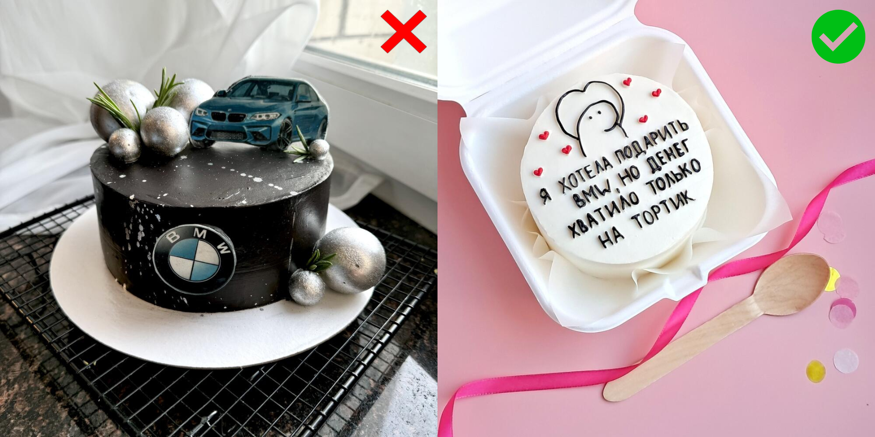 Допускается упоминание товарных знаков в составе фразы, если это не выглядит как реклама бренда или копирование его визуального образа. Можно использовать формулировки вроде: «Я хотела подарить BMW, но хватило только на торт» — так как она не изображает сам товарный знак и не нарушает права бренда.